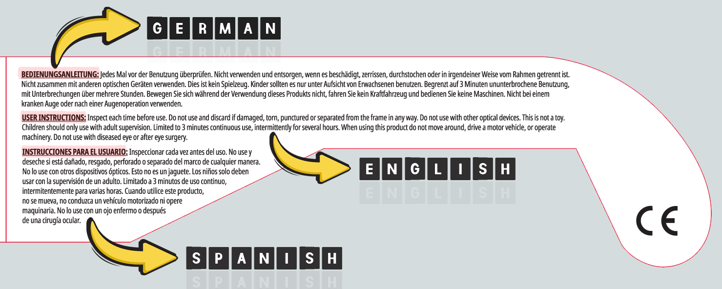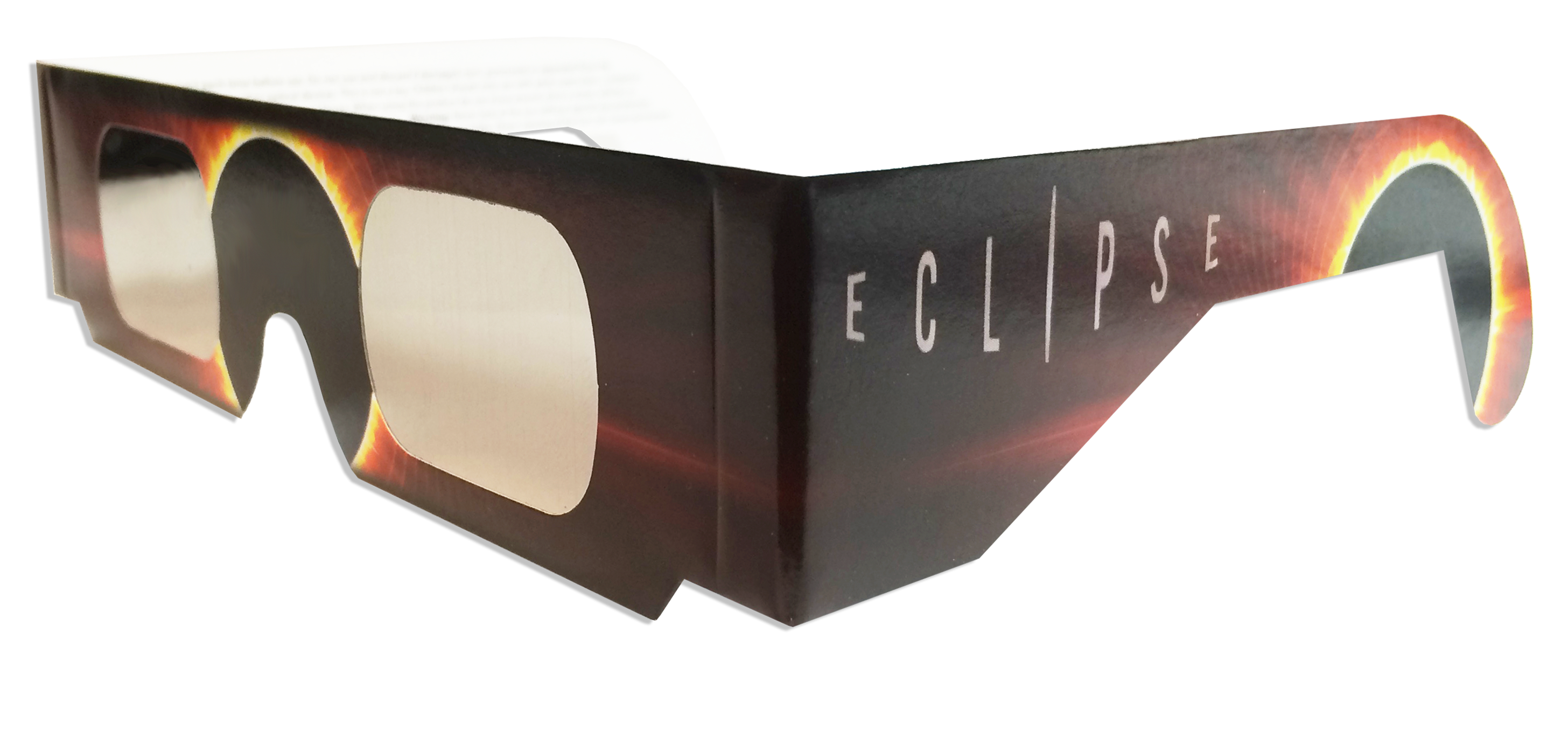 Proudly MADE IN THE USA, our stock eclipse glasses are spectacular for sales and premiums at schools, planetariums, science centers, and retailers. For your safety, the backside is pre-printed with warnings and instructions in 3 different languages (English, Spanish and German).